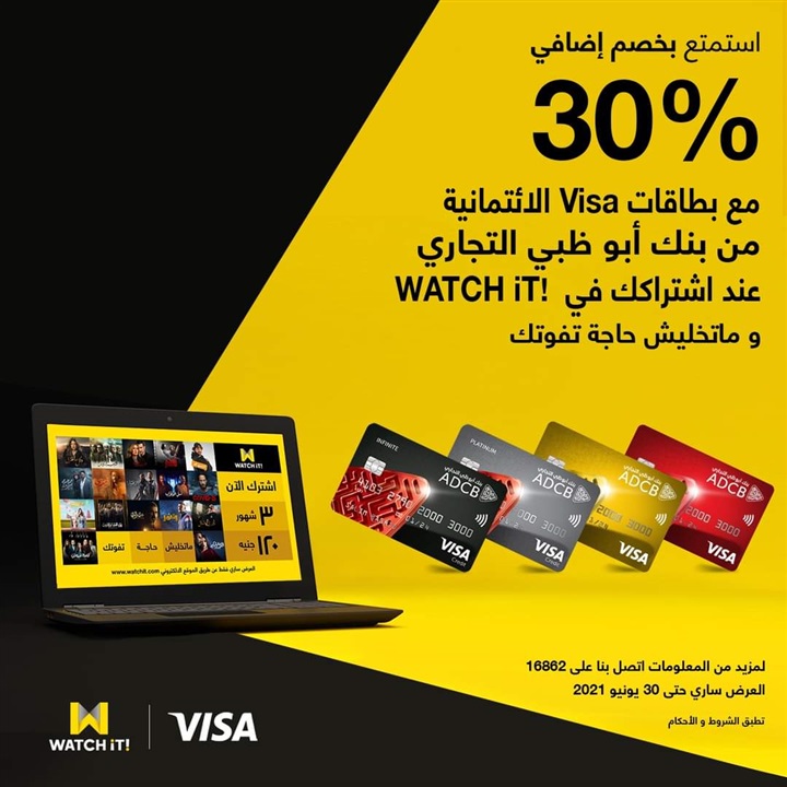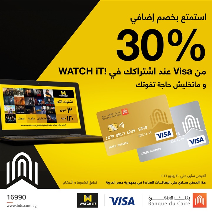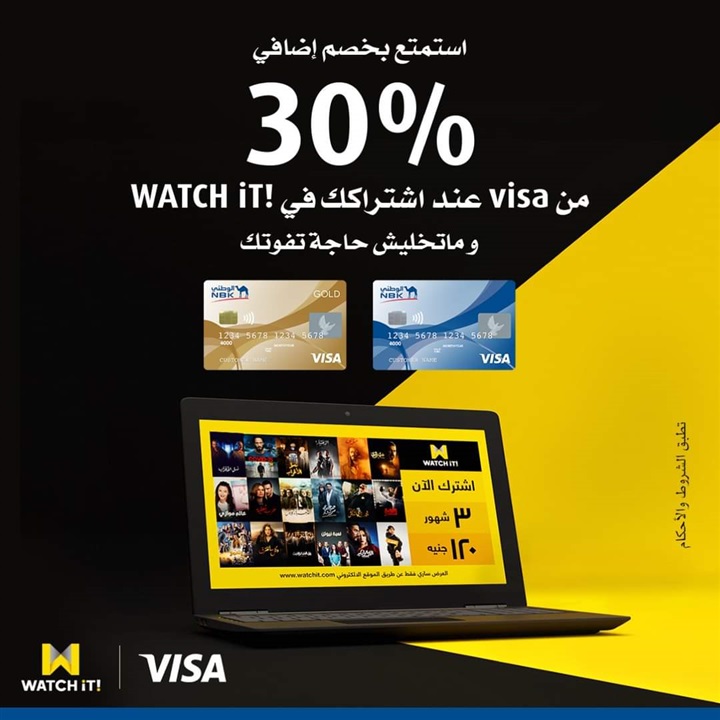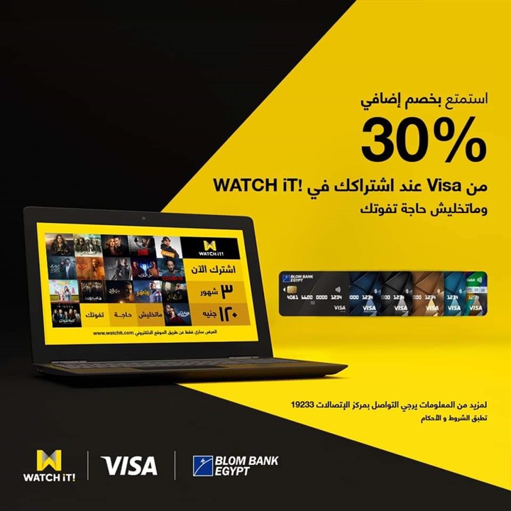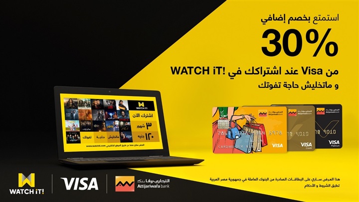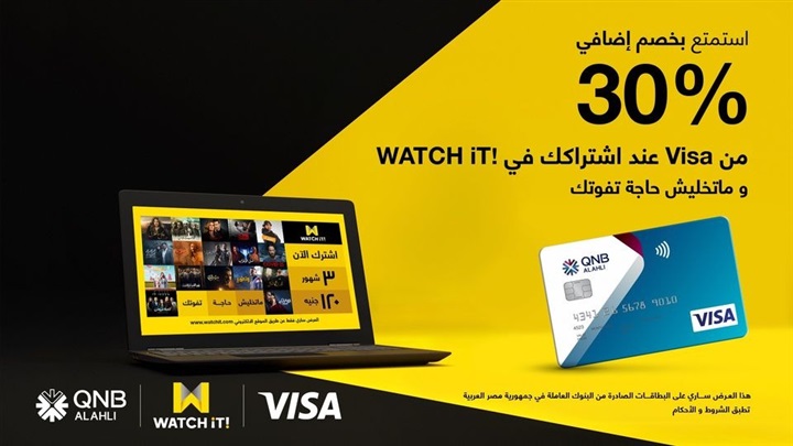 بمناسبة شهر رمضان المبارك، قام 10 بنوك “القاهرة، مصر، بلوم، الأهلي المتحد، أبو ظبي التجاري، كريدي أجريكول،QNB ABC، التجاري وفا، الكويت الوطني” بالإعلان عبر صفحاتهم الرسمية على موقع التواصل الإجتماعي “فيس بوك”، لعملائهم عن إتاحة خصم 30% عند الإشتراك في منصة WHATCHIT، وذلك عند استخدام بطاقات Visa البنك، للاستمتاع بمسلسلات وبرامج رمضان.