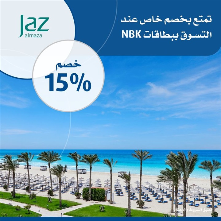 . أعلن بنك الكويت الوطني- مصر NBK، عبر صفحته الرسمية على موقع التواصل الاجتماعي “فيس بوك”، لعملائه عن إمكانية الحصول على خصم 15% في فندق جاز ألماظة بالساحل الشمالى، وذلك من خلال استخدام بطاقات بنك الكويت الوطني.