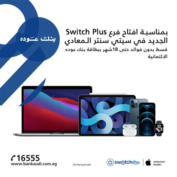 أعلن بنك عَوده- مصر، عبر صفحته الرسمية على موقع التواصل الاجتماعي “فيس بوك”، لعملائه عن إمكانية تقسيط منتجات “Apple” بمدة تصل إلى 18 شهرًا دون فوائد في فرع «Switch Plus» الجديد بسيتي سنتر المعادي، بالإضافة إلى الحصول على تأمين “Switch Care” مجانًا، وذلك عند استخدام بطاقات بنك عَوده الائتمانية.