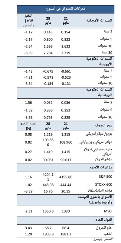 . خلال الأسبوع، ساعدت تصريحات المتحدثينن من بنك الاحتياطي الفيدرالي حول الابقاء على سياسة نقدية تيسيرية في الفترة القادمة على تهدئة المخاوف بشأن التضخم نسبيًا في الأسواق، وبالفغل تراجعت هذه التوترات على الرغم من ورود بيانات عن معدلات الانفاق على الاستهلاك الشخصي والتي جاءت أعلى من المتوقع.