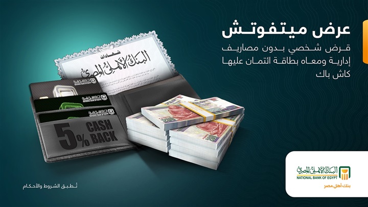 . أعلن البنك الأهلي المصري، عبر صفحته الرسمية على موقع التواصل الاجتماعي “فيس بوك”، للعملاء الحاليين والجدد أصحاب شهادات البنك بالعملة المحلية ذات العائد الثابت، عن إمكانية الحصول على قرض شخصي بدون رسوم ادارية، وبطاقة ائتمان مع كاش باك 5% بحد اقصى مصاريف الإصدار، بنسبه تمويل تصل إلى 90% من قيمه الشهادة، ويتم الاستفادة من العرض وفقا الشروط الأتية: