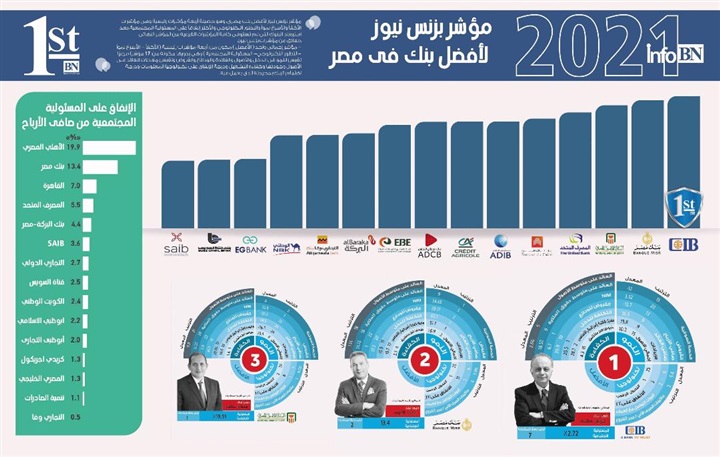 كما تصدر البنك الأهلي مؤشر بزنس نيوز للبنوك الأكثر إنفاقا على المسئولية المجتمعية، وأنفق البنك نحو 19.9% من صافى أرباحه العام الماضى على المسئولية المجتمعية، ويعادل ذلك 2.6 مليار جنيه وهو ما يزيد على كامل أرباح بنك الإسكندرية على سبيل المثال، ويعكس ذلك الاعتماد الكبير من الحكومة على البنوك المملوكة لها فى تنفيذ برامج لتحسين الخدمات المقدمة للمجتمعات المحلية. ويظهر ذلك أيضا على حجم ما قدمه بنك حكومى آخر هو بنك مصر الذى أنفق 13.4% من أرباحه ليحتل المرتبة الثانية فى مؤشر المسئولية المجتمعية. وأنفق المصرف المتحد 5.5% من أرباحه على المسئولية المجتمعية ليحل فى المرتبة الثالثة.