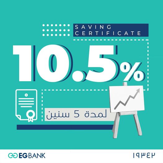 يقدم البنك المصري الخليجي EGBANK، لعملائه الشهادات الادخارية الخماسية بالجنيه المصري، ذات العائد الثابت، وبعائد 10.5% سنويًا، وبدورية صرف شهرية، وبحد أدنى 500 جنيه لربط الشهادة.
