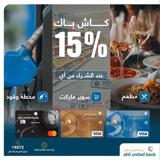 منتجات بنكية ببطاقات البنك الأهلي المتحد الائتمانية.. احصل على كاش باك 15% في المطاعم بواسطة بنوك مصر 1 يوليو، 2021 كتب بنوك مصر 1 يوليو، 2021 النشر 0FacebookTwitterPinterestLinkedinWhatsappTelegramCopy LinkEmail 338FacebookTwitterPinterestLinkedinWhatsappTelegramCopy LinkEmail .أعلن البنك الأهلي الأهلي المتحد- مصر، عبر صفحته الرسمية على موقع التواصل الاجتماعي “فيس بوك”، لعملائه عن إمكانية الحصول على كاش باك 15% من أي سوبر ماركت، ومحطات الوقود، والمطاعم، وذلك عند استخدام بطاقات البنك الأهلي المتحد الائتمانية. النشر 0 FacebookTwitterPinterestLinkedinWhatsappTelegramCopy LinkEmail الجنيه الإسترليني ينخفض بعد تحذير بنك إنجلترا بشأن رد الفعل المفرط على ارتفاع التضخم إنفوجراف| بتسهيلات من 31 بنك.. الدولة تطلق مشروعا قوميا لإحلال وتحويل السيارات للعمل بالغاز الطبيعي