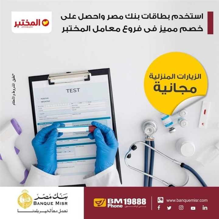 منتجات بنكية ببطاقات بنك مصر.. تمتع بخصم مميز وحصري في فروع معامل البرج والمختبر بواسطة بنوك مصر 7 يوليو، 2021 كتب بنوك مصر 7 يوليو، 2021 النشر 0FacebookTwitterPinterestLinkedinWhatsappTelegramCopy LinkEmail 724FacebookTwitterPinterestLinkedinWhatsappTelegramCopy LinkEmail .أعلن بنك مصر، عبر صفحته الرسمية على موقع التواصل الاجتماعي “فيس بوك”، لعملائه عن فرصة الحصول على خصم مميز وحصري على التحاليل والإشاعات في فروع معامل البرج ومعامل المختبر، بالإضافة إلى الزيارات المنزلية مجانًا، وذلك عند الدفع باستخدام بطاقة بنك مصر. النشر 0 FacebookTwitterPinterestLinkedinWhatsappTelegramCopy LinkEmail استقرار سعر الدولار بداية تعاملات الأربعاء في 19 بنكا.. ويسجل 15.62 جنيها للشراء بـ«الأهلي المصري» للتوعية بالخدمات والمنتجات البنكية.. بنك مصر يطلق حملة ترويجية في جميع المحافظات
