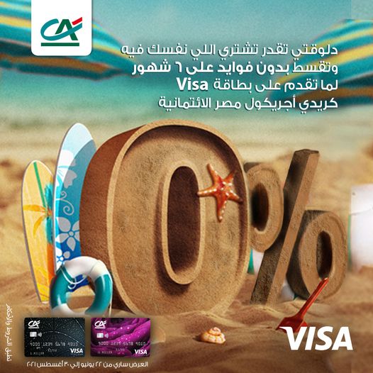 أعلن بنك كريدي أجريكول- مصر، عبر صفحته الرسمية على موقع التواصل الاجتماعي “فيس بوك”، لعملائه عن فرصة تقسيط المشتريات حتى 6 أشهر بدون فوائد، وذلك عند التقدم بطلب الحصول على بطاقة إئتمان Visa بنك كريدي أجريكول.