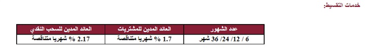 - استخدام البطاقة في تقسيط عمليات السحب النقدي والمشتريات على فترات تصل إلط عمليات السحب النقدي والمشتريات على فترات تصل إلى 36 شهر بعائد مدين مميز.