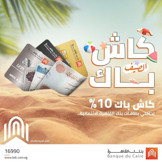 العرض ينطبق على جميع أنواع بطاقات بنك القاهرة الائتمانية (ماعدا بطاقة التقسيط).