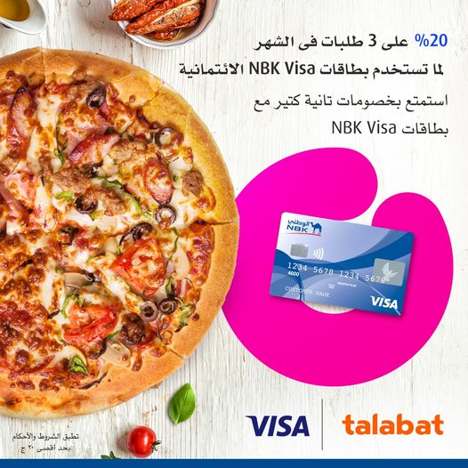 منتجات بنكية ببطاقات فيزا بنك الكويت الوطني.. احصل على خصم 20% من «Talabat» بواسطة بنوك مصر 12 يوليو، 2021 كتب بنوك مصر 12 يوليو، 2021 النشر 0FacebookTwitterPinterestLinkedinWhatsappTelegramCopy LinkEmail 417FacebookTwitterPinterestLinkedinWhatsappTelegramCopy LinkEmail .أعلن بنك الكويت الوطني- مصر، عبر صفحته الرسمية على موقع التواصل الاجتماعي “فيس بوك” لعملائه، عن إمكانية الحصول على خصم 20% من تطبيق “Talabat” بحد أقصى 3 طلبات في الشهر، وذلك عند الدفع باسنخدام بطاقات فيزا بنك الكويت الوطني.ويرجى العلم أن العرض سارٍ حتى 31 يوليو 2021. النشر 0 FacebookTwitterPinterestLinkedinWhatsappTelegramCopy LinkEmail ببطاقات بنك الكويت الوطني.. تمتع بخصم 15% في فندق «جاز ألماظة» قسّط مشترياتك من نون حتى 18 شهرا بدون فوائد بكريدت كارد البنك الأهلي المصري