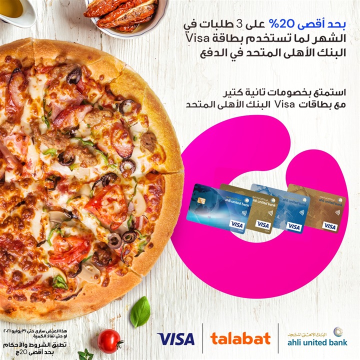 منتجات بنكية ببطاقات فيزا البنك الأهلي المتحد.. احصل على خصم 20% من «Talabat» بواسطة بنوك مصر 12 يوليو، 2021 كتب بنوك مصر 12 يوليو، 2021 النشر 0FacebookTwitterPinterestLinkedinWhatsappTelegramCopy LinkEmail 396FacebookTwitterPinterestLinkedinWhatsappTelegramCopy LinkEmail .أعلن البنك الأهلي المتحد- مصر، عبر صفحته الرسمية على موقع التواصل الاجتماعي “فيس بوك” لعملائه، عن إمكانية الحصول على خصم 20% من تطبيق “Talabat” بحد أقصى 3 طلبات في الشهر، وذلك عند الدفع باسنخدام بطاقات فيزا البنك الأهلي المتحد.ويرجى العلم أن العرض سارٍ حتى 31 يوليو 2021. النشر 0 FacebookTwitterPinterestLinkedinWhatsappTelegramCopy LinkEmail توقيع 4 عقود جديدة للتنقيب عن الذهب بالصحراء الشرقية باستثمارات تتجاوز 17 مليون دولار ببطاقات فيزا بنك أبوظبي التجاري.. احصل على خصم يصل إلى 30% من «Talabat»