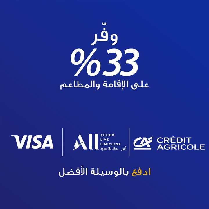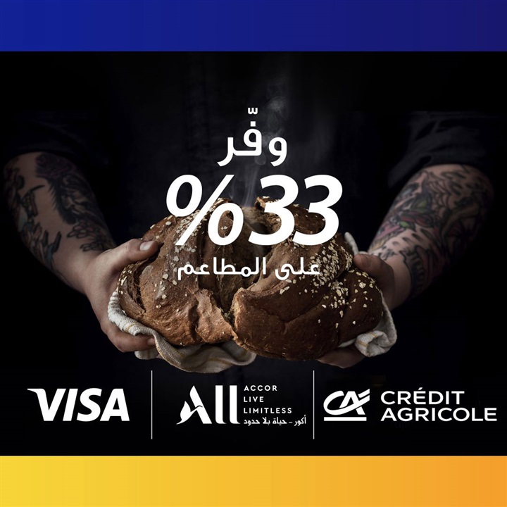 . أعلن بنك كريدي أجريكول- مصر، عبر صفحته الرسمية على موقع التواصل الاجتماعي “فيس بوك”، لعملائه عن فرصة الحصول على خصم 33% في عدد من المطاعم والفنادق مع برنامج ALL – برنامج أكور للولاء، وذلك عند الدفع باستخدام بطاقات فيزا بنك كريدي أجريكول الائتمانية.