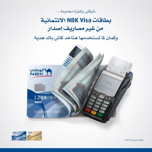 بطاقة NBK Visa Classic الائتمانية: الحد الأدنى للإنفاق هو 1000 جنيه لإسترداد 150 جنيه.