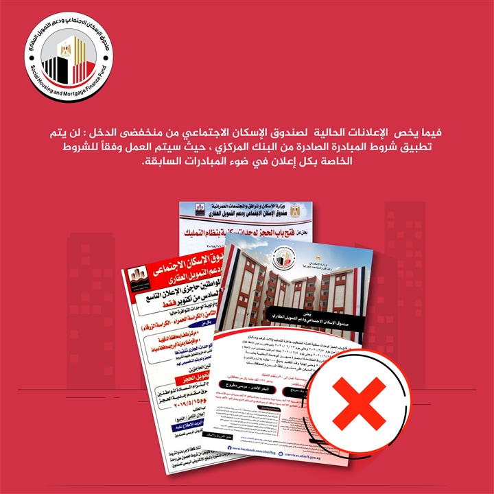 . قالت مى عبدالحميد، رئيس صندوق الإسكان الاجتماعى، أنه لن يتم تطبيق مبادرة البنك المركزى الأخيرة ذات الفائدة الـ3%، على إعلانات مشروع الإسكان الاجتماعي السابقة، حيث سيتم العمل وفقاً للشروط الخاصة بكل إعلان في ضوء المبادرات السابقة.