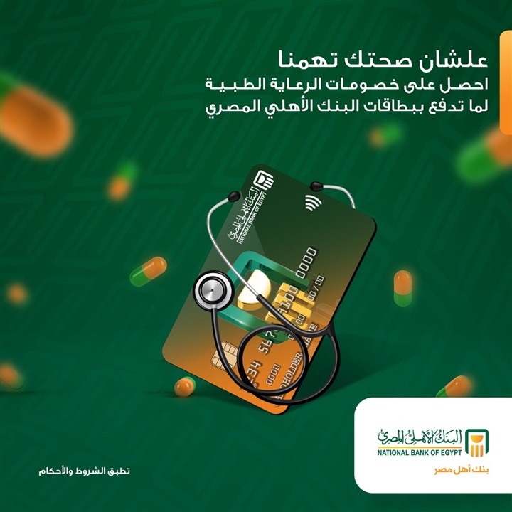 تلقي الخدمات الطبية بعروض وخصومات خاصة من خلال مقدمي الخدمات الطبية المختارين من شركة الأهلي للخدمات الطبية أثناء استخدام بطاقات الائتمانية أو الخصم المباشر أو بطاقة الدفع المسبق الخاصة بالبنك الأهلي المصري.