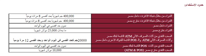 تستخدم في عمليات السحب النقدي والمشتريات داخل وخارج مصر.
