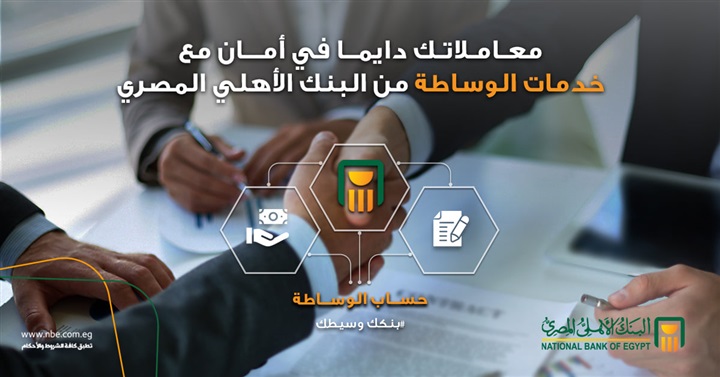 أعلن البنك الأهلي المصري، عبر صفحته الرسمية على موقع التواصل الاجتماعي “فيس بوك”، عن خدمته الجديدة “خدمة الوساطة المالية” لعملائه، حيث يعمل البنك كوسيط بينهم وبين طرف أو أطراف أخرى في إدارة صفقة ما تم الاتفاق عليها بين عميل البنك الأهلي المصري والأطراف الأخرى، بما في ذلك الصفقات العقارية لبيع أو شراء الأراضي، مصانع، مولات تجارية، قرى سياحية، فنادق وإلخ، او معاملات مالية او شراكة، وما إلى ذلك.