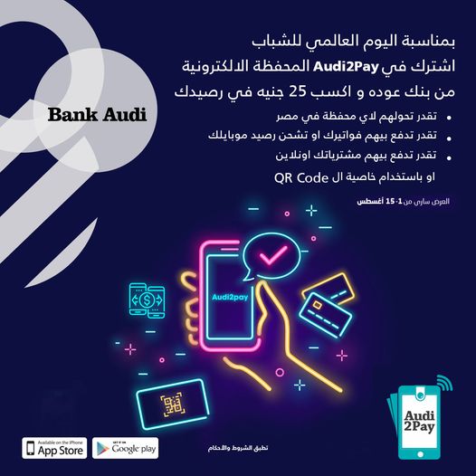 إمكانية الحصول على 25 جنيها في رصيدك عند الاشتراك في المحفظة الإلكترونية لبنك عوده Audi2pay.