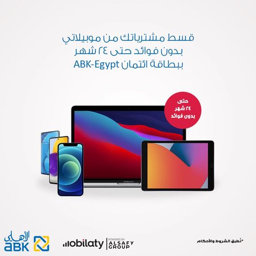 استخدم بطاقتك الائتمانية لدفع مشترياتك من موبيلاتي ثم اتصل بمركز خدمة عملاء البنك الأهلي الكويتي – مصر على 19322 (متاح 24/7 ) لطلب تقسيط المعاملة بناءً على المنتج الذي اخترته وفقًا للتالي: