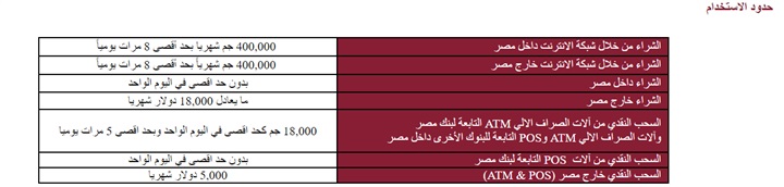 تستخدم في عمليات السحب النقدي والمشتريات داخل وخارج مصر.