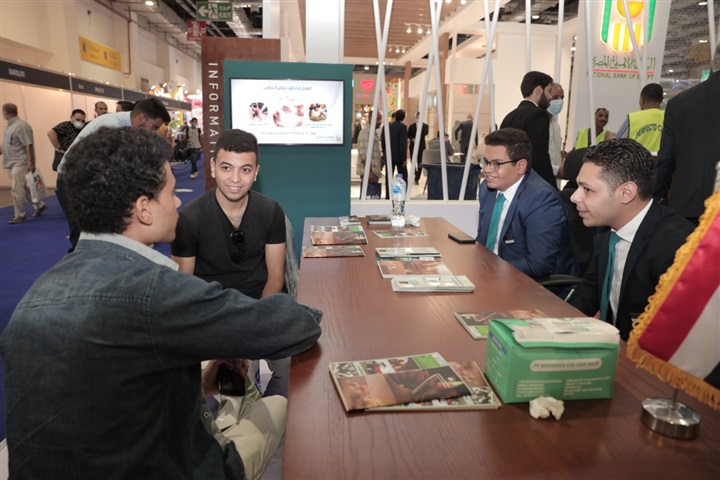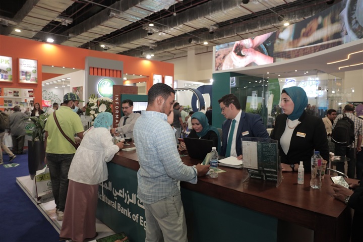 ويشهد جناح البنك إقبالاً كثيفاً من رواد المعرض للإطلاع على الخدمات والبرامج التمويلية، التي يقدمها البنك حيث استحوذت برامج تمويل القطاع الزراعي المدعمة والتي يمنحها البنك للمزراعين والمنتجين بفائدة 5% سنوية متناقصة على اهتمام الافراد والشركات الصغيرة والمتوسطة خاصة قروض تمويل الحاصلات الزراعية، أو ما يعرف بالسلف الزراعية وقروض الثروة الحيوانية وتمويل البتلو وتطوير وإنشاء مراكز الألبان والميكنة الزراعية وغيرها، فيما تركز إهتمام الشركات الكبرى والجمعيات الزراعية على البرامج التمويلية التي يقدمها البنك لاستصلاح الأراضي وزراعة الصوب، وأنظمة الري الحديث وتمويل الطاقة الشمسية والصناعات القائمة على القطاع الزراعي، والتي يمنحها البنك للمستثمرين للشركات الكبرى بعائد تنافسي وتسهيلات وتيسيرات كبيرة؛ لتحفيزهم على الإنتاج، بما ينعكس على تنمية وتطوير القطاع الزراعي ويحقق إستراتيجية التنمية المستدامة للدولة.