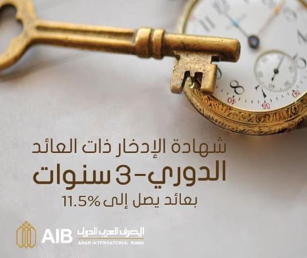 يُقدم المصرف العربي الدولي لعملائه شهادة الإيداع ذات العائد الدوري لمدة 3 سنوات، وبعائد تنافسي يصل إلى 11.5%، وبحد أدنى 5000 جنيه للشهادة.، وبدوريات صرف متنوعة (شهري – ربع سنوي – نصف سنوي – سنوي).
