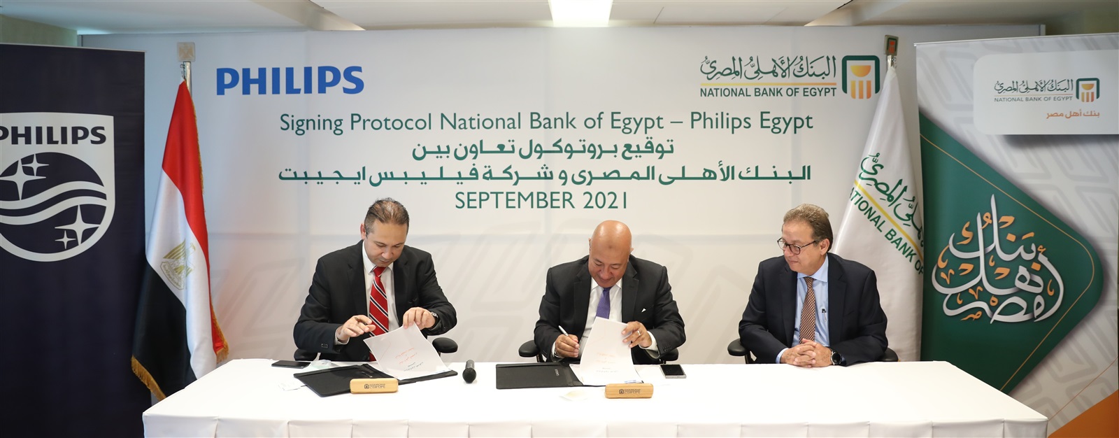 وقّع البنك الأهلي المصري بروتوكول تعاون مع شركة فيليبس إيجيبت< بهدف تزويد المستشفيات والعيادات الصغيرة والمتوسطة في مصر بالتمويل اللازم لشراء المعدات الطبية.
