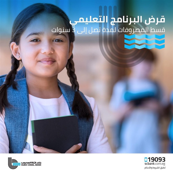 يقدم بنك قناة السويس، لعملائه قرض التعليم لجميع المراحل التعليمية بأسعار فائدة تنافسية، بتمويل يصل إلى 500 ألف جنيه، وبمدة سداد تصل إلى 3 سنوات.