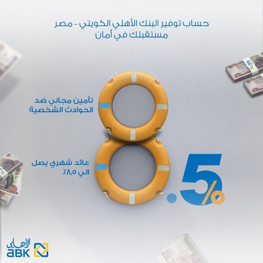 . أعلن البنك الأهلي الكويتي- مصر، عبر صفحته الرسمية على موقع التواصل الاجتماعي “فيس بوك”، لعملائه عن حساب التوفير بالجنيه المصري بعائد شهري يصل إلى 8.5%، بالإضافة إلى الحصول على وثيقه تأمين مجانية ضد الحوادث الشخصية.