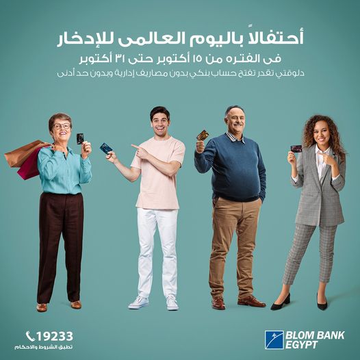 . تحت رعاية البنك المركزي المصري وبمناسبة اليوم العالمي للادخار، أعلن بنك بلوم- مصر، عبر صفحته الرسمية على موقع التواصل الاجتماعي “فيس بوك”، لعملائه عن إمكانية فتح الحسابات البنكية مجانًا بدون مصاريف إدارية أو حد أدنى لفتح الحساب، بالإضافة إلى الإستمتاع بالمحفظة البنكية بلوم والت مجانًا، وذلك خلال الفترة من 15 إلى 31 أكتوبر 2021.