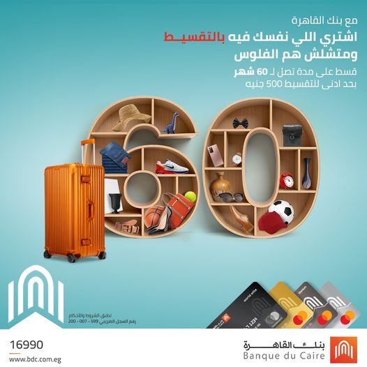 أعلن البنك القاهرة، عبر صفحته الرسمية على موقع التواصل الاجتماعي “فيس بوك”، لعملائه عن إمكانية تقسط المشتريات حتى 60 شهرًا، بحد أدنى 500 جنيه للتقسيط، وذلك عند استخدام بطاقات بنك القاهرة الائتمانية.