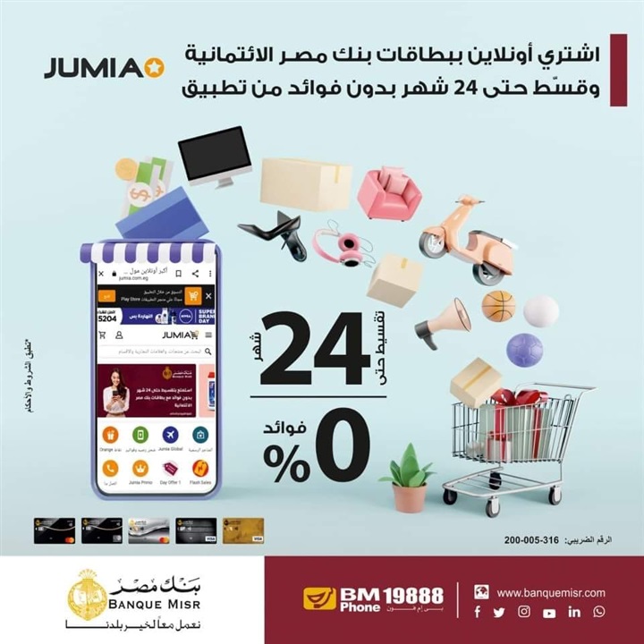 منتجات بنكية بنك مصر: بالبطاقات الائتمانية.. قسّط بدون فوائد من تطبيق «JUMIA» بواسطة بنوك مصر 17 أكتوبر، 2021 كتب بنوك مصر 17 أكتوبر، 2021 النشر 0FacebookTwitterPinterestLinkedinWhatsappTelegramCopy LinkEmail 329FacebookTwitterPinterestLinkedinWhatsappTelegramCopy LinkEmail .أعلن بنك مصر، عبر صفحته الرسمية على موقع التواصل الاجتماعي “فيس بوك”، لعملائه حاملي بطاقات البنك الائتمانية، عن إمكانية الاستمتاع بأطول فترة سداد حتى 24 شهرا دون فوائد عند الشراء بحد أدنى للحركة 3 الآف جنيه بحد أقصى 30 ألف جنيه من تطبيق JUMIA. اقرأ بالتفصيل:11 بطاقة ائتمانية من بنك مصر النشر 0 FacebookTwitterPinterestLinkedinWhatsappTelegramCopy LinkEmail ارتفاع جماعي في مؤشرات البورصة ختام تداولات الأحد استقرار سعر الدولار نهاية تعاملات الأحد في 22 بنكا.. ويسجل 15.64 جنيها للشراء بـ«الأهلي المصري»