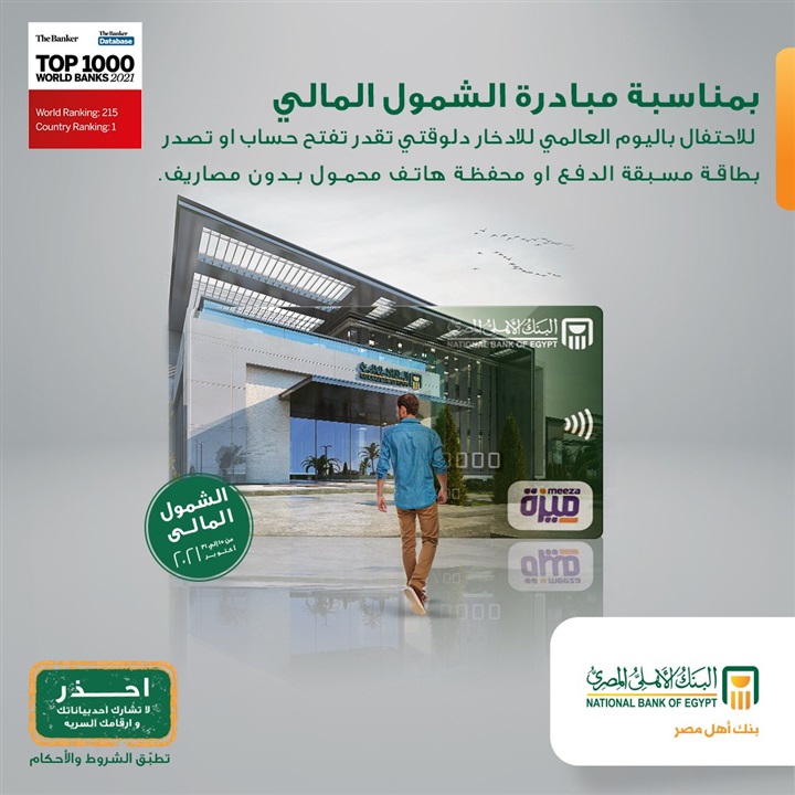 أعلن البنك الأهلي المصري، عبر صفحته الرسمية على موقع التواصل الاجتماعي “فيس بوك”، لعملائه أنه بمناسبة مبادرات البنك المركزي المصري للاحتفال بعيد الادخار العالمي، يمكن فتح حساب، وإصدار بطاقة مسبقة الدفع، أو محفظة هاتف محمول بدون مصاريف.