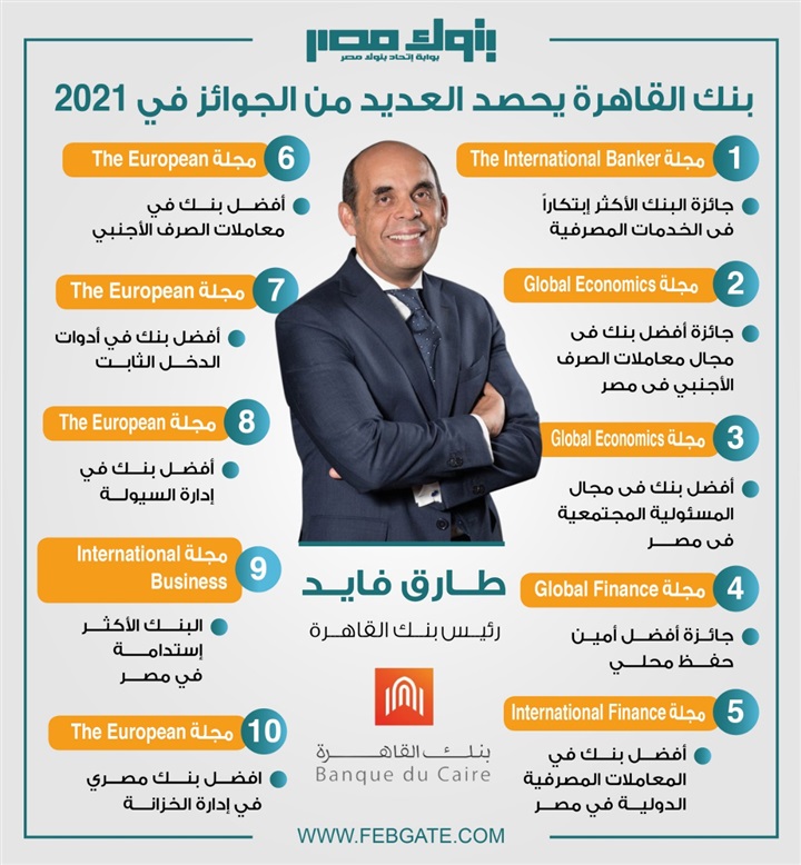 وترصد “بنوك مصر” البوابة الرسمية لاتحاد بنوك مصر، انفوجرافا، أبرز الجوائز التي حصل عليها بنك القاهرة في عام 2021.