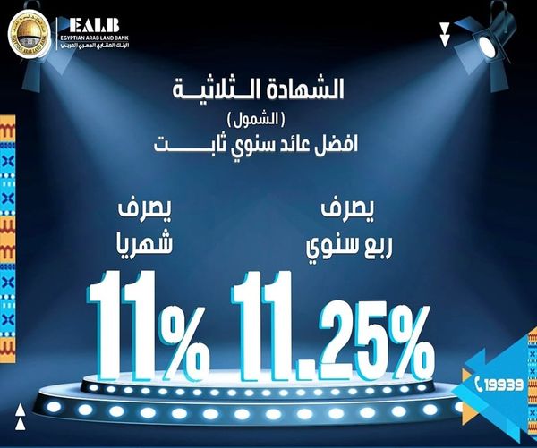 يقدم البنك العقاري المصري، لعملائه شهادة الشمول الثلاثية ذات العائد الثابت بالجنيه المصري، بحد أدنى 1000 جنيه، وبعائد يصل إلى 11.25% سنويًا، وبدورية صرف (شهر – ربع سنوي).