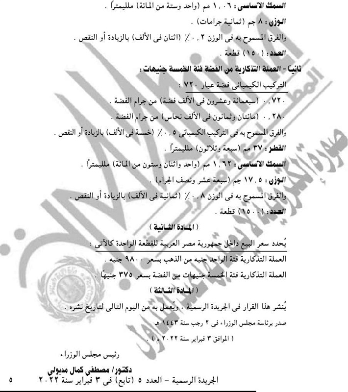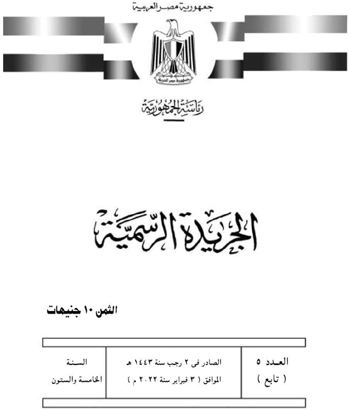 نشر عدد الجريدة الرسمية، الصادر الأحد، قرار الدكتور مصطفى مدبولي، رئيس مجلس الوزراء، رقم 15 لسنة 2022.