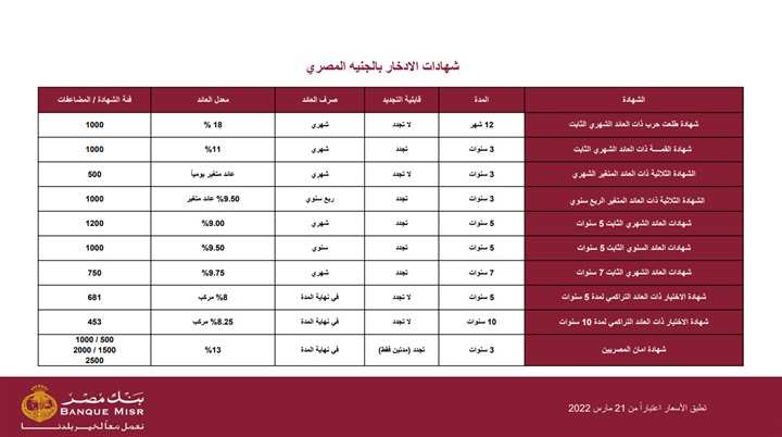 الحد الأدنى لفتح الشهادة: 1000 جنيه.