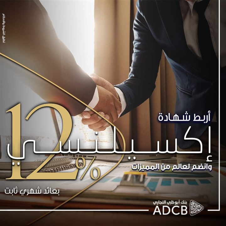 أعلن بنك أبوظبي التجاري، عن زيادة العائد على شهادة إكسلنسي الثلاثية ذات العائد الشهري الثابت بنسبة 1% لتصل إلى 12% بدلا من 11% سنوياً.