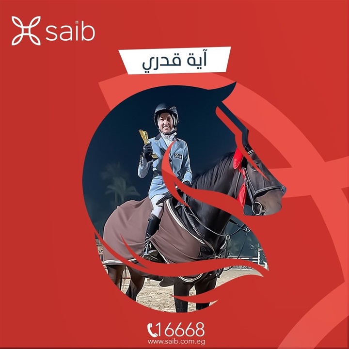 . أعرب بنك الشركة المصرفية العربية saib، عن فخره بتقديم الدعم والتهنئه لبطلة saib في الفروسية “آية قدري” إحدى أفراد المؤسسة؛ وذلك بمناسبة حصولها على المركز الأول في بطولة كأس مصر للفروسية.