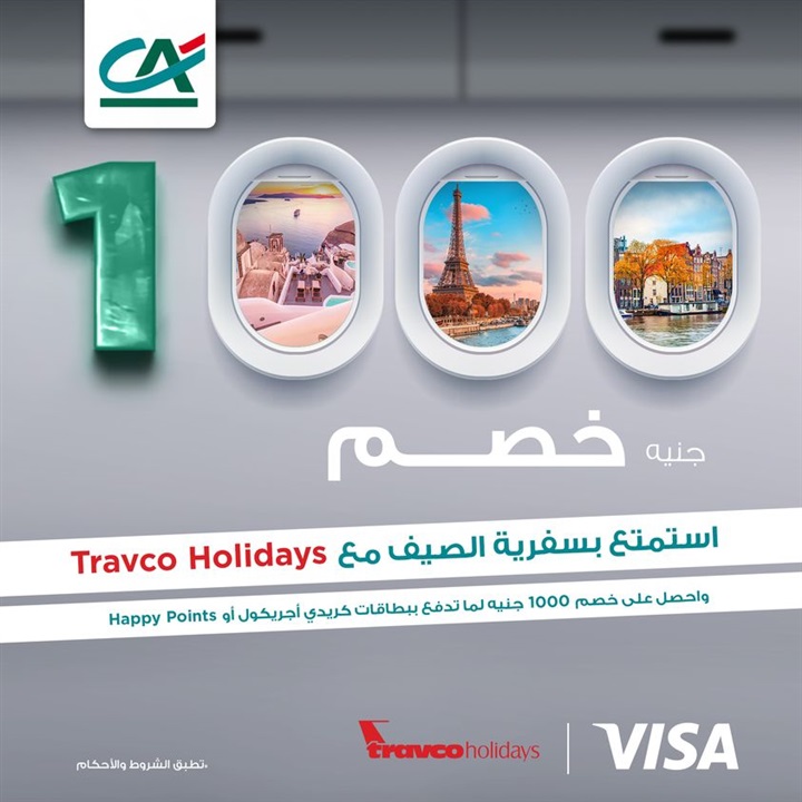أعلن بنك كريدي أجريكول- مصر، لعملائه، عن إمكانية الحصول على خصم 1000 جنيه على الرحلات من “Travco holidays”، وذلك عند استخدام بطاقات بنك كريدي أجريكول الائتمانية.