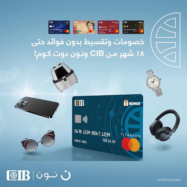 . أعلن البنك التجاري الدولي CIB، لعملائه عن إمكانية تقسيط المشتريات حتى 18 شهرا دون فوائد من موقع وتطبيق noon Egypt، وذلك عند استخدام بطاقات البنك التجاري الدولي الائتمانية.