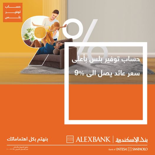 أعلن بنك الإسكندرية، لعملائه، عن إمكانية الحصول على حساب توفير بلس وبأعلى سعر عائد يصل إلى 9%.