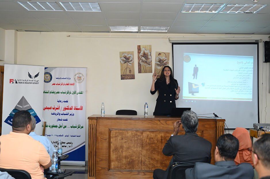 . في إطار بروتوكول التعاون الموقع لوزارة الشباب والرياضة مع الهيئة العامة للرقابة المالية، انطلقت أولي جولات الاستراتيجية الوطنية للثقافة المالية غير المصرفية بالمحافظات وذلك ضمن جلسات الملتقى الختامي لأنشطة مراكز شباب مصر والمقام تحت شعار “مراكز شباب من اجل جمهورية جديدة”، والذي عُقد تحت رعاية وزير الشباب والرياضة، بمشاركة 1000 شاب وفتاة يمثلون 12 محافظة، بالمدينة الشبابية بأبي قير بالإسكندرية.