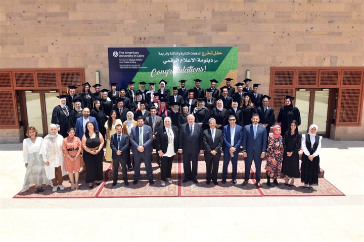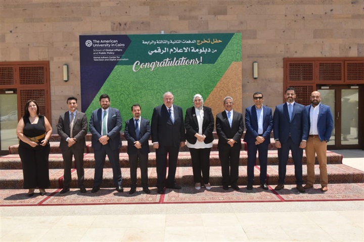 شهد مركز كمال أدهم للصحافة التليفزيونية والرقمية بكلية الشئون الدولية والسياسات العامة بالجامعة الأمريكية بالقاهرة أمس الثلاثاء 28 يونيو 2022، حفل تخريج 90 طالبا وطالبة من الحاصلين على دبلومة الإعلام الرقمي، وقام بتسليم الشهادات للخريجين الأستاذ الدكتور حسين أمين، مدير المركز.