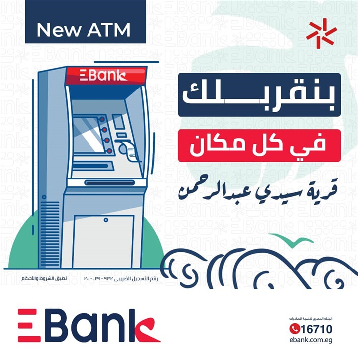 أعلن البنك المصري لتنمية الصادرات، عبر صفحته الرسمية على موقع التواصل الاجتماعي “فيسبوك”، عن تدشين ماكينة صراف آلي ATM جديدة في قرية سيدي عبدالرحمن، أمام قرية مراسي مجمع خدمات تحيا مصر في الساحل الشمالي.