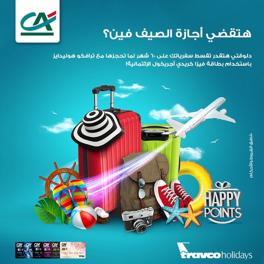 أعلن بنك كريدي أجريكول لعملائه عن إمكانية تقسيط الرحلات على 60 شهرًا عند الحجز من شركة Travco holidays، وذلك عند الدفع باستخدام ببطاقات فيزا بنك كريدي أجريكول الائتمانية.