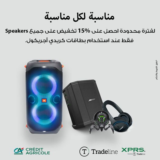 . أعلن بنك كريدي أجريكول- مصر، لعملائه حاملي بطاقات البنك عن إمكانية الحصول على خصم 20% على جميع السماعات من “Tradeline”.
