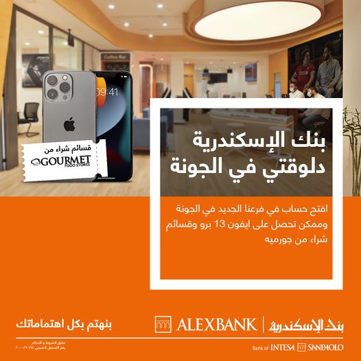 أعلن بنك الإسكندرية، لعملائه، عن إمكانية الحصول على “أيفون 13 برو” هدية، وذلك عند فتح حساب بفرع بنك الإسكندرية الجديد بالجونة.