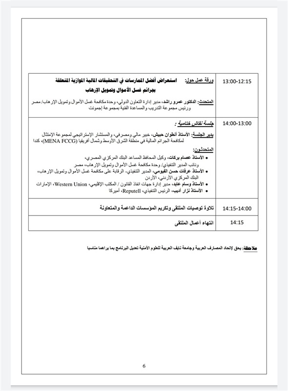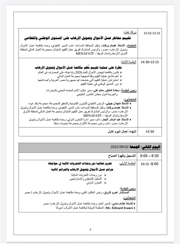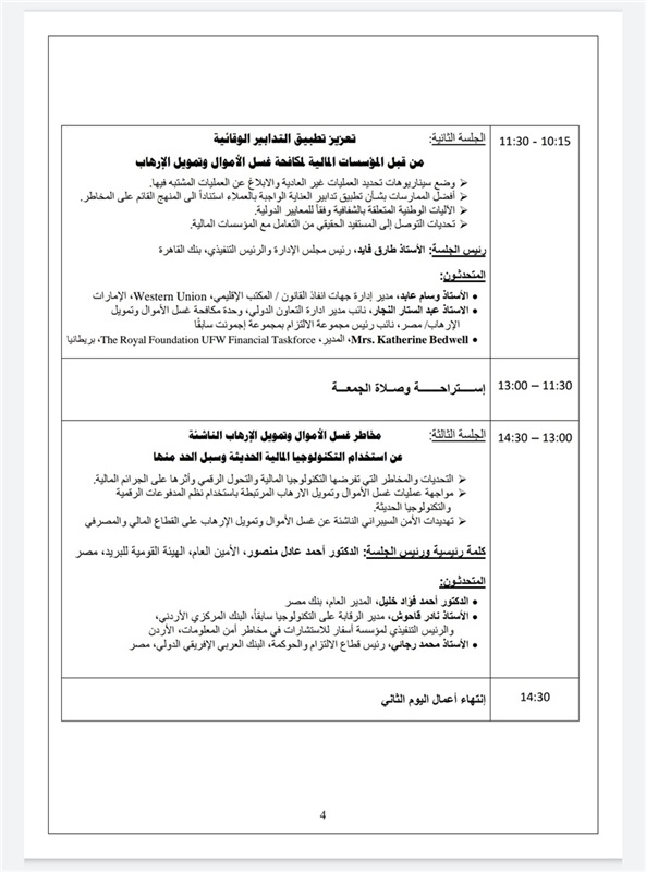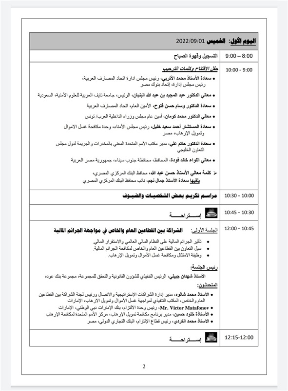 يأتي ذلك بتنظيم من اتحاد المصارف العربية والبنك المركزي المصري، واتحاد بنوك مصر، ووحدة مكافحة غسل الأموال وتمويل الإرهاب، وجامعة نايف العربية للعلوم الأمنية- السعودية، مكتب الأمم المتحدة لمكافحة الإرهاب، الأكاديمية الدولية لمكافحة الفساد (IACA) النمسا ومكتب الأمم المتحدة المعني بالمخدرات والجريمة لدول مجلس التعاون الخليجي.