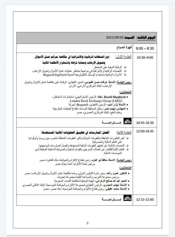 وترصد “بنوك مصر”، البوابة الرسمية لاتحاد بنوك مصر، أجندة برنامج العمل والجدول الزمني للملتقى كالآتي: