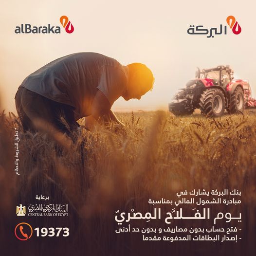 . تحت رعاية البنك المركزي المصري، وبمناسبة مبادرات الشمول المالي للاحتفال بعيد الفلاح المصري، أعلن بنك البركة- مصر، لعملائه عن باقة من المزايا، وذلك في الفترة من 1 وحتى 15 سبتمبر 2022. وجاءت تلك المزايا كالتالي: